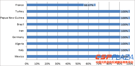 圖表4:非(fei)常規光熱發電技術應用(yong)項目占各(ge)國總光熱發電項目的(de)比例