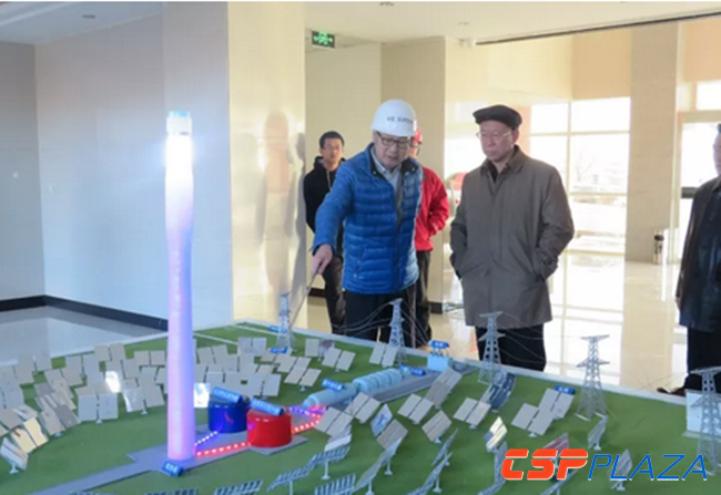 穆東升副主任一行10余人先行來到公司辦公樓大廳,了解了公司的基本情況,隨后參觀了一期工程10MW電站的鏡場。參觀過程中,穆東升副主任饒有興趣地詢問了一期工程10MW電站的整體運營情況、50MW項目的建設情況及公司自主研發的技術及應用情況,熊步青一一詳細做了介紹。聽取介紹后,穆東升副主任對公司取得的成績表示祝賀,同時表達了對公司發展前景的美好期許。