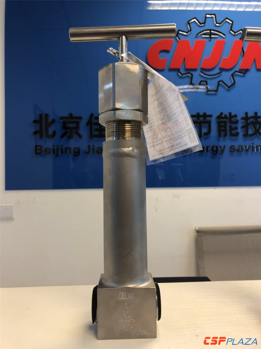 為了解決上述難題,北京佳潔能新節能技術有限公司(簡稱“北京佳潔能”)的合作伙伴蘇州德蘭能源科技股份有限公司利用其介質為液態金屬的閥門及高溫熔鹽閥門的制造技術經驗,吸收國外先進技術,最終成功研發出適用于光熱電站聚熱儲能系統的儀表閥。據了解,該儀表閥采用一體式鍛造,特殊的閥芯閥桿的材質和加工工藝,采用波紋管與非石墨填料等密封,最高壓力達到900LB,使用溫度600℃,同時可配套電伴熱,防止出現熔鹽泄漏和凍堵問題。