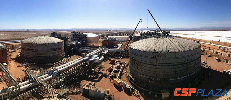 2017年11月23日,摩洛哥Noor2槽式光熱電站熔鹽罐安裝工作全部結束。截至目前,Noor2槽式光熱電站#2冷罐注鹽工作完成23%;#2熱罐汽、水壓試壓完成;#1冷罐正在進行注鹽前準備工作;#1熱罐注水已完成25%。