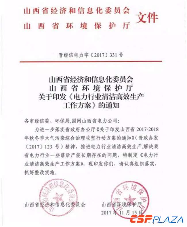 ??為進一步落實省政府辦公廳《關于印發山西省2017-2018年秋冬季大氣污染綜合治理攻堅行動方案的通知》(晉政辦發〔2017〕123號)精神,推進電力行業清潔高效生產,解決我省電力行業一些落后產能長期存在的問題,特制定《電力行業清潔高效生產工作方案》,現印發你們,請認真組織落實,抓好整改實施。