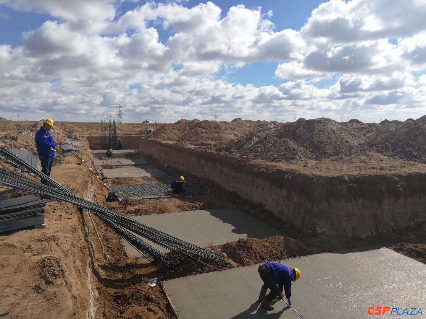CSPPLAZA光熱發電網:近日獲悉,入選我國首批光(guang)(guang)(guang)熱(re)發電(dian)示范(fan)項(xiang)目的(de)中核龍騰100MW導熱(re)油(you)槽式光(guang)(guang)(guang)熱(re)發電(dian)項(xiang)目的(de)現場建設工作(zuo)正在緊張有序地推進,目前(qian)該(gai)項(xiang)目場平(ping)工作(zuo)已經完(wan)成95%左右,2萬平(ping)方米安(an)裝廠房基礎(chu)已經完(wan)成,12月份將完(wan)成結構安(an)裝,該(gai)項(xiang)目也是繼中廣核德令(ling)哈50MW槽式導熱(re)油(you)光(guang)(guang)(guang)熱(re)發電(dian)項(xiang)目之后,進度最快的(de)槽式光(guang)(guang)(guang)熱(re)項(xiang)目之一。