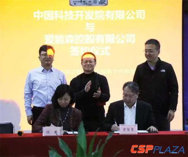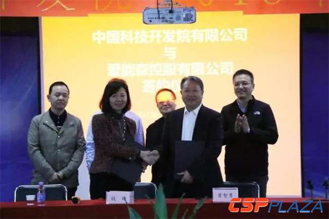 2017年12月22日,愛能森控股與中國科技開發院舉行了隆重的簽約儀式。融合中國科技開發院專業科技孵化器、科技加速器、打造高科技產業園區的先進理念與商業模式,愛能森以“儲能+多能互補+智慧能源”為技術核心開發的“零碳科技廣場、清潔能源冷暖站”產品為依托,愛能森控股與中國科技開發院簽約共同打造零碳科技園,零碳科技產業城,為各級人民政府提供生態、環保、綠色的高科技產業服務。中國科技開發院院長楊斌、副院長錢曉、愛能森控股有限公司首席技術官曾智勇等出席本次簽約儀式。
