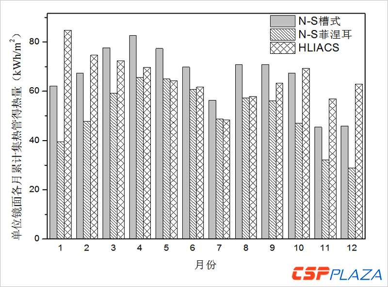 而南北(bei)軸水平菲涅耳單位鏡面(mian)全年累(lei)計(ji)集熱管得(de)熱量僅(jin)約為608kWh/m2,與前(qian)兩者相差(cha)較(jiao)大,特別是在深冬(dong)季節幾(ji)個月(yue)的得(de)熱量未達到HLIACS的一半(ban)。