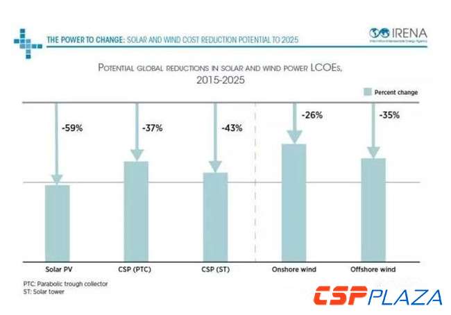 #塔式光熱發電成本將下降43%,從17美分/千瓦時降至9美分/千瓦時;