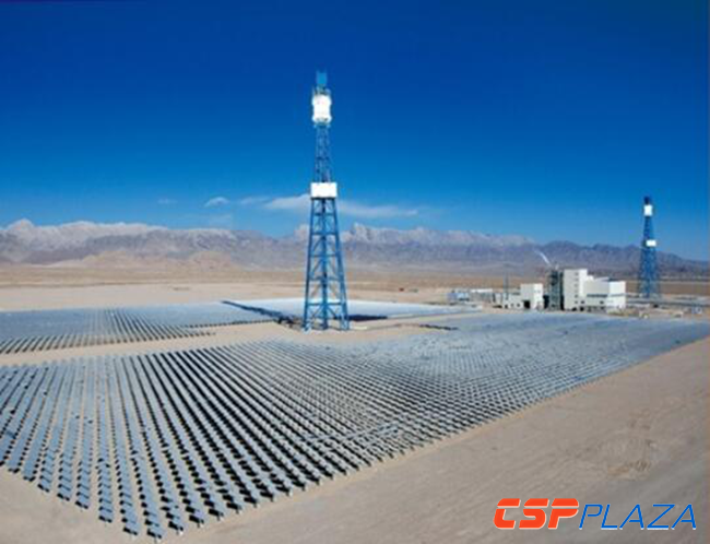 圖:首航節能敦煌10MW熔鹽塔式光熱(re)電站吸(xi)熱(re)器正在工作中(zhong)