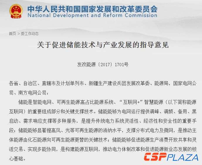 2017年10月,國家發改委、能源局、財政部、科技部、工信部聯合下發《關于促進我國儲能技術與產業發展的指導意見》(下稱《指導意見》)。這是我國儲能行業中第一個指導性政策,該政策確立了我國儲能行業從短期到中長期的發展方向,明確了近十年的發展目標。作為中國儲能產業第一個指導性政策,提出未來10年內分兩個階段推進相關工作,第一階段實現儲能由研發示范向商業化初期過渡;第二階段實現商業化初期向規模化發展轉變。