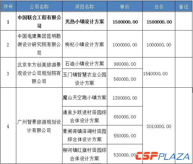 CSPPLAZA光熱發電網訊:近日,中共玉門市委農村工作辦公室特色小鎮、田園綜合體、智慧公園設計方案采購項目單一來源采購成交公告正式公布。據公告,該項目的光熱小鎮設計方案成交商為中國聯合工程有限公司,成交價為1580000元人民幣。