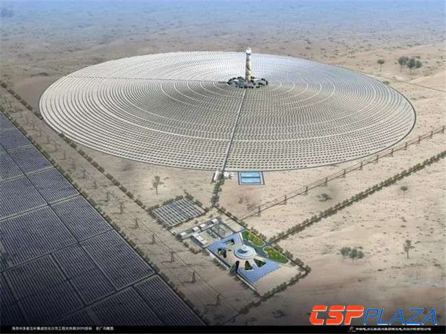 光熱電站位于光伏電站南側,采用塔式熔鹽技術,儲熱時長為12小時。