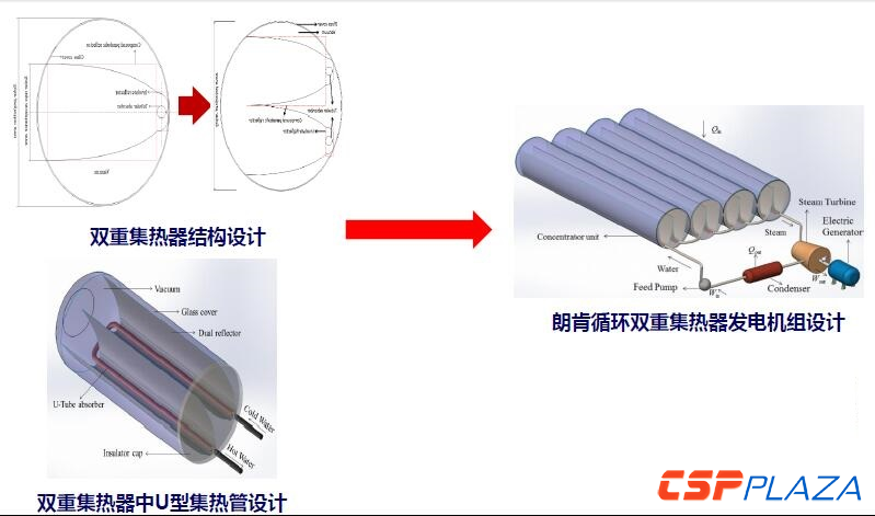 2003年,課題組設計搭建了一個10kW利用太陽能的超臨界二氧化碳發電樣機;同時通過實驗與理論摸索,提出了多種基于太陽能的新型循環結構,比如布雷頓循環和朗肯耦合發電的結構;并且針對不同熱源溫度為布雷頓循環和朗肯提供不同發熱溫度。如,熱源溫度是500℃,布雷頓循環是比較合適的,供熱溫度能夠達到200℃,因為考慮到是熱電聯產,就沒有采用再壓縮結構來提高了供熱的溫度。