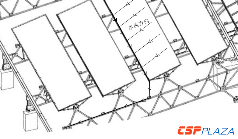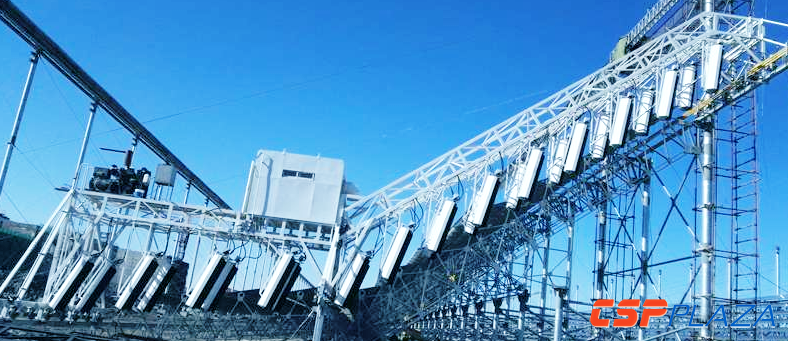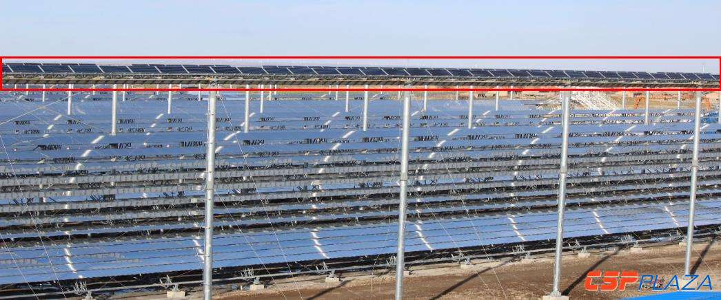 雖(sui)然(ran)已經進(jin)行了最小化(hua)遮光(guang)(guang)(guang)(guang)設計,兆陽光(guang)(guang)(guang)(guang)熱仍然(ran)在HLIACS系統接收(shou)器(qi)的背面(向(xiang)陽面)設計安(an)裝(zhuang)了光(guang)(guang)(guang)(guang)伏(fu)(fu)發電(dian)裝(zhuang)置,以(yi)充(chong)分(fen)(fen)(fen)利用(yong)鏡場土地(di)及(ji)光(guang)(guang)(guang)(guang)熱接收(shou)器(qi)支(zhi)撐結構資源(yuan),同時對(dui)接收(shou)器(qi)起到遮光(guang)(guang)(guang)(guang)、擋風(feng)及(ji)防水等作(zuo)用(yong)。這部分(fen)(fen)(fen)光(guang)(guang)(guang)(guang)伏(fu)(fu)發電(dian)裝(zhuang)置完全不占用(yong)土地(di),不需額外安(an)裝(zhuang)支(zhi)撐結構,還可(ke)以(yi)利用(yong)鏡場配電(dian)電(dian)網(wang)接入(ru),建(jian)設成(cheng)本大(da)幅下(xia)降(jiang),同時,這部分(fen)(fen)(fen)光(guang)(guang)(guang)(guang)伏(fu)(fu)發電(dian)功(gong)率與(yu)鏡場光(guang)(guang)(guang)(guang)照強度(對(dui)應鏡場集熱功(gong)率,與(yu)廠用(yong)電(dian)負荷功(gong)率有相(xiang)當關聯度)基本成(cheng)比例關系,適合(he)實現該部分(fen)(fen)(fen)電(dian)量的自發自用(yong)本地(di)消納。以(yi)120萬(wan)(wan)平米HLIACS鏡場為例,能夠安(an)裝(zhuang)的接收(shou)器(qi)光(guang)(guang)(guang)(guang)伏(fu)(fu)功(gong)率約(yue)為10MW,年發電(dian)量約(yue)1300-1500萬(wan)(wan)度,可(ke)生產約(yue)2/3以(yi)上(shang)的廠用(yong)電(dian)量。