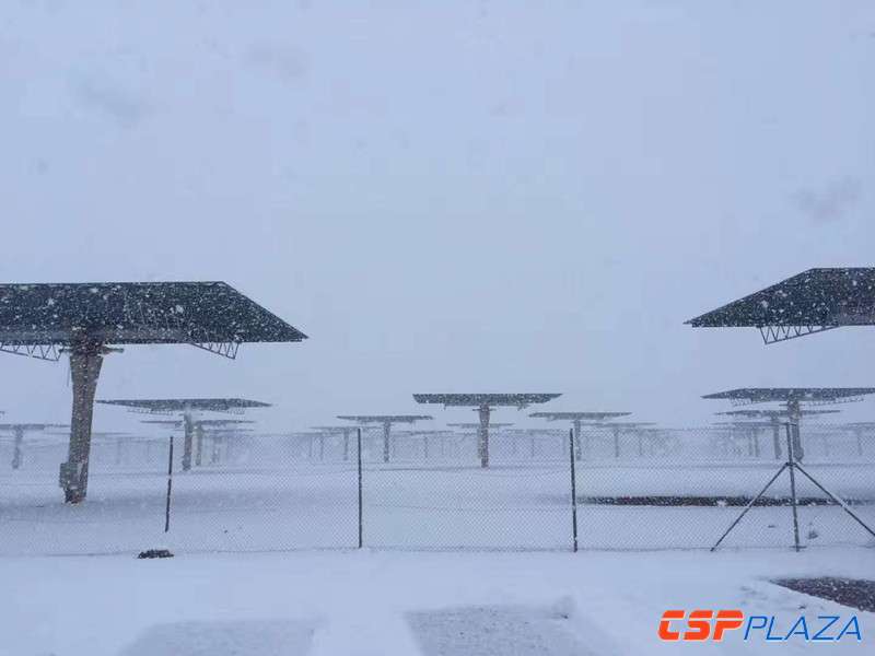 圖:雪(xue)花飛舞的Noor3塔式(shi)光熱電站定日鏡場(chang)