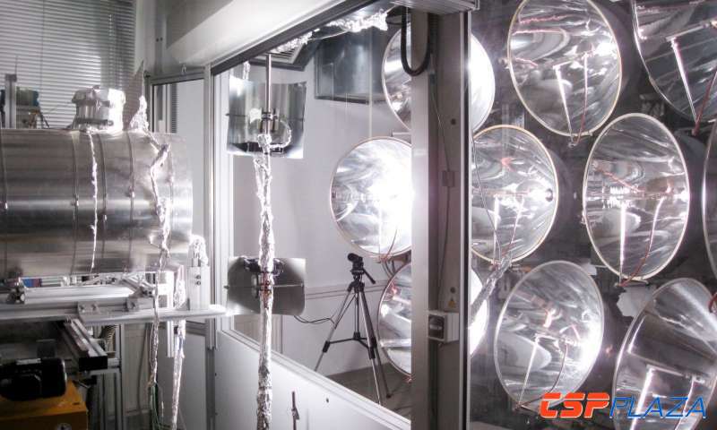 CSPPLAZA光熱發電網訊:近日,德國宇航中心DLR研究人員于(yu)(yu)德國科隆(long)對利用光(guang)熱(re)發電進行(xing)燃(ran)料生產(chan)的(de)反應堆(dui)裝(zhuang)置CONTISOL成(cheng)功進行(xing)了測(ce)試。CONTISOL作為一種可在空(kong)氣(qi)中運(yun)行(xing)的(de)太(tai)陽能反應堆(dui),能夠(gou)生產(chan)氫及其它太(tai)陽能燃(ran)料,并(bing)且值得一提(ti)的(de)是,由于(yu)(yu)該(gai)裝(zhuang)置可利用配置儲能系(xi)統的(de)光(guang)熱(re)發電系(xi)統進行(xing)太(tai)陽能燃(ran)料的(de)生產(chan),因(yin)此(ci)可以實現(xian)全天候(hou)不間斷運(yun)行(xing)。