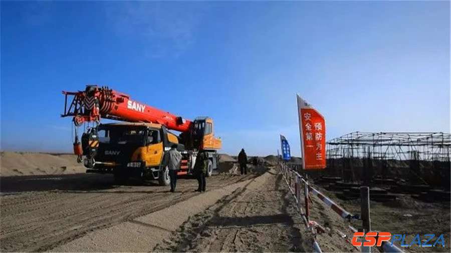 同時,該項目已完成集熱管、反射鏡、驅動支撐塔架、懸臂、扭矩管、LOC柜、熔鹽泵、熔鹽閥、蒸汽發生系統、汽輪發電機組、高低加除氧器、空冷系統、水處理系統等關鍵核心設備的采購,部分設備已陸續運抵項目現場。