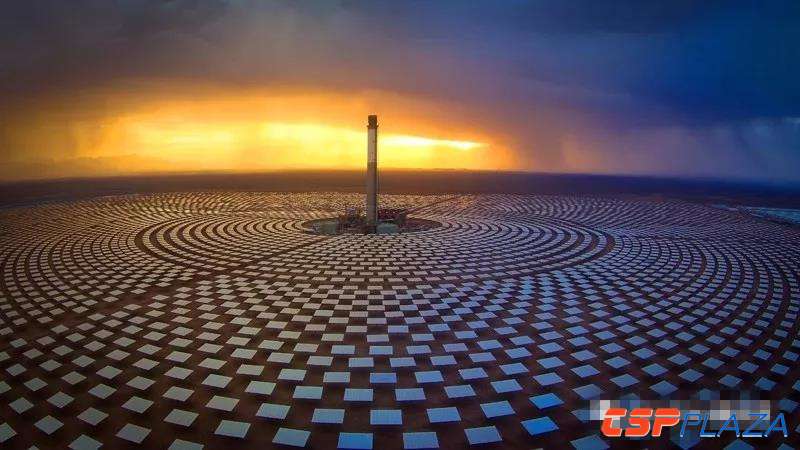電站采用塔式光熱技術,鏡場內的7400塊定日鏡,通過全場追日系統,像“向日葵”一樣,根據太陽的角度變化,隨時調整,將太陽能光線全部集中投射到光熱塔頂部,加熱高溫高壓蒸汽,推動汽輪機做功發電。