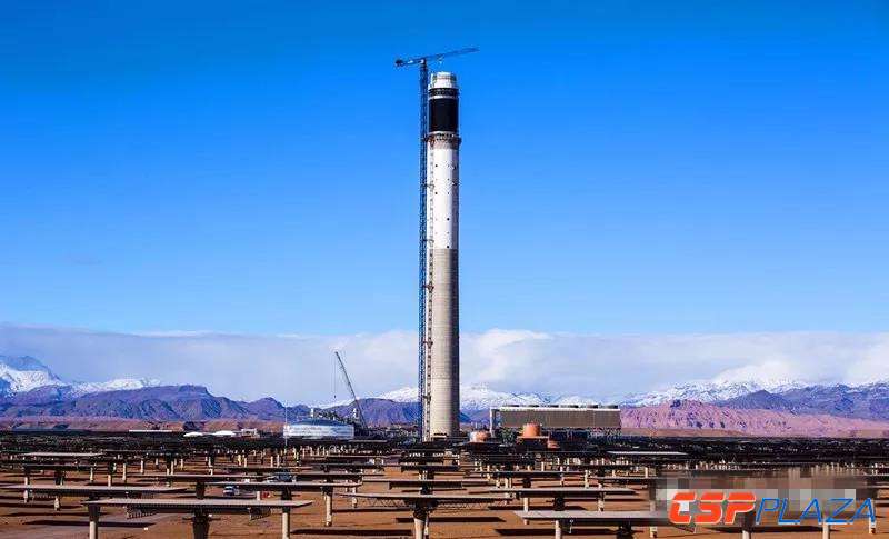 摩洛哥努奧二期200兆瓦光熱電站,是目前全球單機容量最大的槽式光熱電站。電站采用拋物線槽式太陽能聚熱發電技術,通過弧度鏡反射太陽光線,加熱導熱油,產生高溫蒸汽,帶動發電機進行發電。同時,吸熱系統將部分熱量儲存到儲熱罐中,在晚間進行發電。這一技術,可使電站每天發電17個小時,且整個發電過程不產生任何污染,解決了硅晶板光伏電站無太陽光就不能發電的問題,是目前全球最先進的清潔能源技術。