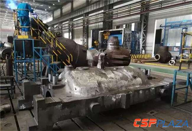 圖:汽輪機高壓缸轉子和外缸正在緊張加工中