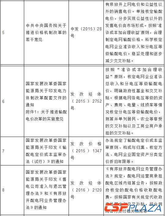 1. 輸配電價改革正按照“管住中間、放開兩頭”的電價改革總體思路不斷深化。《國務院辦公廳關于印發電價改革方案的通知》(國辦發〔2003〕62號)明確規定了輸配電價改革的原則和方向,給后續政策制定奠定了堅實基礎。《中共中央國務院關于進一步深化電力體制改革的若干意見》(中發〔2015〕9號)進一步將電價改革作為首要任務,明確提出單獨核定輸配電價,按“準許成本加合理收益”原則,分電壓等級核定等要求。