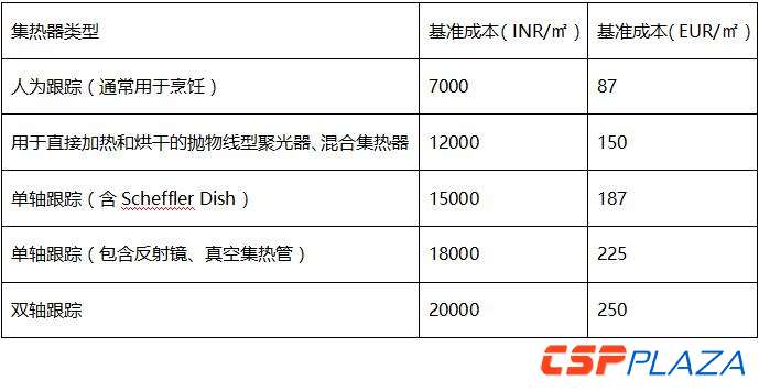 表:不同類型集熱器的基準成本(來源:MNRE)