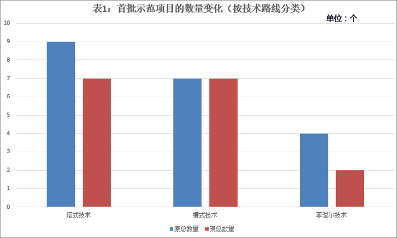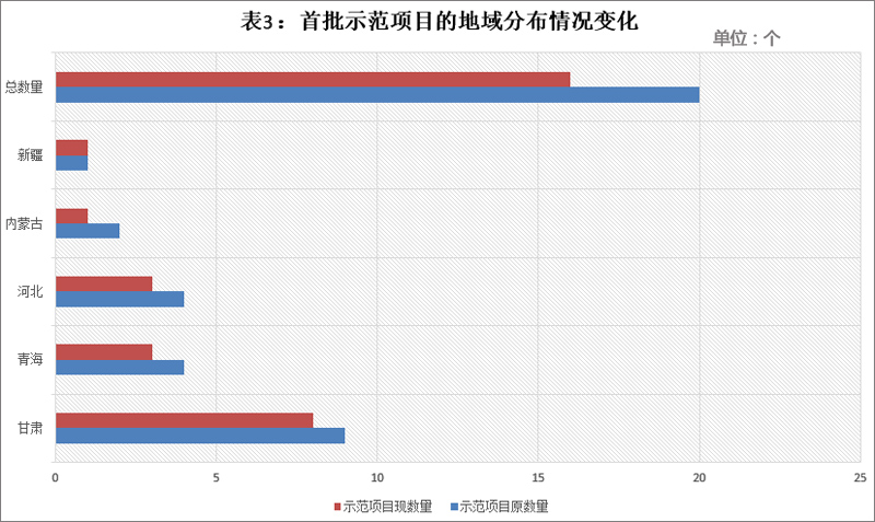 從地域分布(bu)來(lai)看,首批示范項(xiang)目的(de)分布(bu)情況(kuang)發(fa)生(sheng)了一些變(bian)化,20個(ge)國家(jia)光熱示范項(xiang)目原分布(bu)于甘(gan)肅(su)(9個(ge))、青海(4個(ge))、河北(4個(ge))、內蒙古(2個(ge))、新(xin)疆(jiang)(1個(ge))五地,其中新(xin)疆(jiang)1個(ge)項(xiang)目保(bao)持不(bu)變(bian),甘(gan)肅(su)則由(you)9個(ge)變(bian)為(wei)8個(ge),內蒙由(you)2個(ge)變(bian)為(wei)1個(ge),河北由(you)4個(ge)變(bian)為(wei)3個(ge),青海由(you)4個(ge)變(bian)為(wei)3個(ge)。除新(xin)疆(jiang)以外(wai),其余四(si)個(ge)省區(qu),每(mei)個(ge)省區(qu)均減少了1個(ge)示范項(xiang)目。
