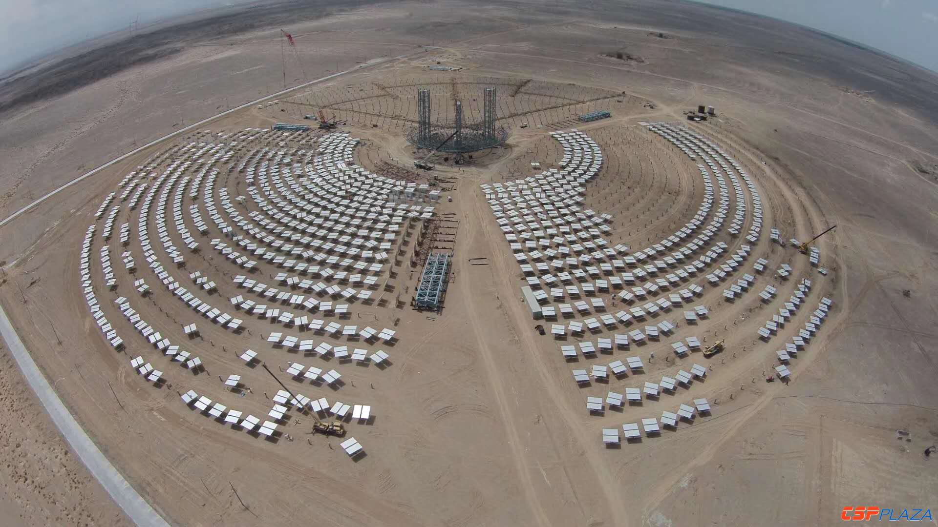 圖:玉門鑫能50兆瓦塔式光熱發電示范項目一號模塊在建
