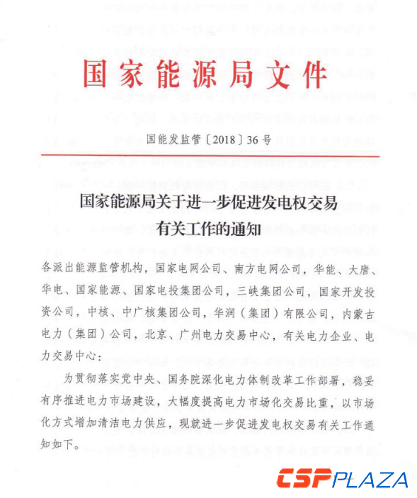 CSPPLAZA光熱發電網訊:近日,國(guo)家能源局下發(fa)《關于(yu)進一(yi)步促進發(fa)電權交易有(you)關工作的通(tong)知》(簡稱“通(tong)知”)。