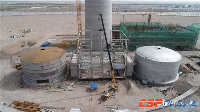 該項目各項施工穩步推進中,截止發稿日,已完成11104套定日鏡的安裝;冷鹽罐和熱鹽罐本體已焊接完成95%;換熱系統設備正在安裝中;主廠房、電控樓和其他附屬建筑物都在全面施工中。