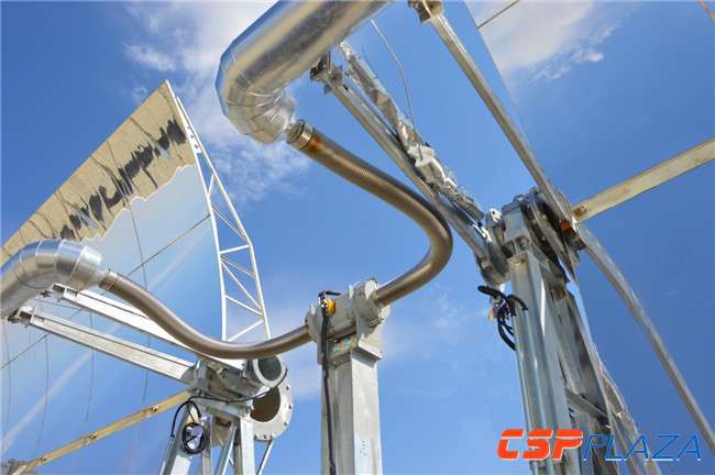 核心部件方面,天津濱海光熱結合實際項目運營經驗,經過不斷研發和優化,成功研發和生產出滿足熔鹽槽式技術需要的旋轉接頭和金屬軟管產品。