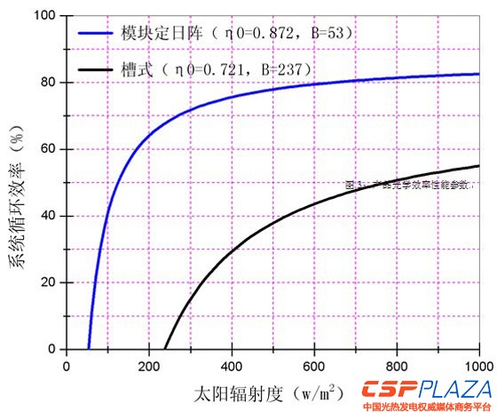 圖(tu):產品(pin)年平均(jun)光學效(xiao)率(lv)性能與槽式比較