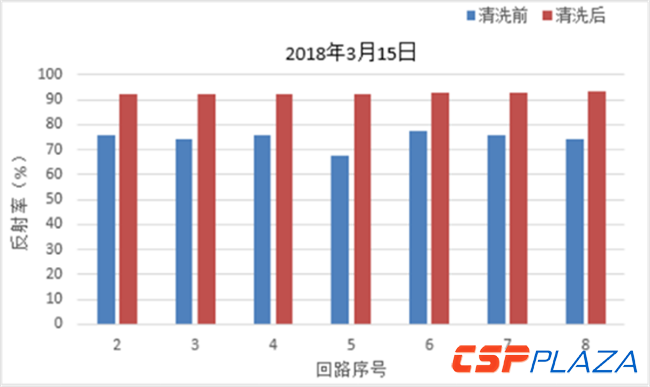 清掃(sao)及(ji)反射率測試數(shu)據統(tong)計充(chong)分反映出,中(zhong)國氣候環(huan)境中(zhong)鏡面清掃(sao)對光(guang)熱電(dian)站(zhan)的極度重(zhong)要性,可靠而經(jing)濟的高頻次清掃(sao)質量事關電(dian)站(zhan)的投資成敗,值得業(ye)內高度關注。
