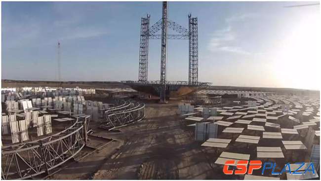 玉門鑫能50MW熔鹽塔式太陽能熱發電示范項目是國家首批太陽能熱發電示范項目之一,采用二次反射(beam-down)技術路線,將建設15個集熱模塊,配置9小時熔鹽儲能系統。該項目于2017年7月開工,計劃于2018年年底并網發電。