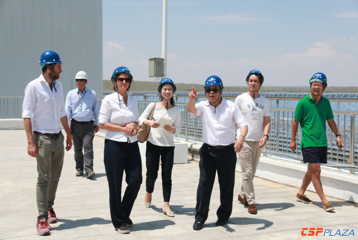 國際可再生能源署高級代表Simon Benmarraze先生在參觀過程中,對于如此大規模的創新技術CSP電站感到興奮和贊嘆,在詳細了解有關東西軸傾斜式線性聚光集熱系統、DSG過熱蒸汽熱傳系統和固態混凝土儲熱系統的技術原理及重要參數后,對該技術體系的創新性、可靠性和經濟性特點表示認可,在聽完兆陽光熱十多年的自主研發歷程介紹后,積極建議兆陽光熱代表到國際光熱行業專家廣泛關注的SolarPACES等高級別國際會議進行更大規模的宣傳推廣,使全球范圍內更多的人了解這項能夠代表中國人自主開發精神的原創太陽能光熱發電技術,對實現以光熱發電為核心的綜合清潔能源安全穩定性、實現光熱光伏綜合發電穩定輸出平價上網的宏偉目標更加充滿信心。