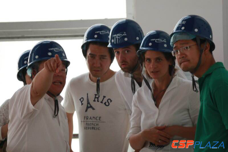 德國弗勞恩霍夫太陽能系統研究所聚焦光學業務總監Anna Heimsath博士和另外四名國際光熱同仁于2018年6月23日中午參觀了一號電站,作為業內資深技術專家,Anna Heimsath博士對該電站集熱系統回路的長度和光學口徑、CPC尺寸、吸熱管的外徑、聚光比、蒸發段及過熱段的長度和儲熱系統換熱管路的間距等參數進行了現場核實推算,判斷兆陽光熱將換熱器和蒸汽發生器的功能完美結合在固態混凝土儲熱系統之內,是能夠大幅降低系統成本的核心優勢之一。
