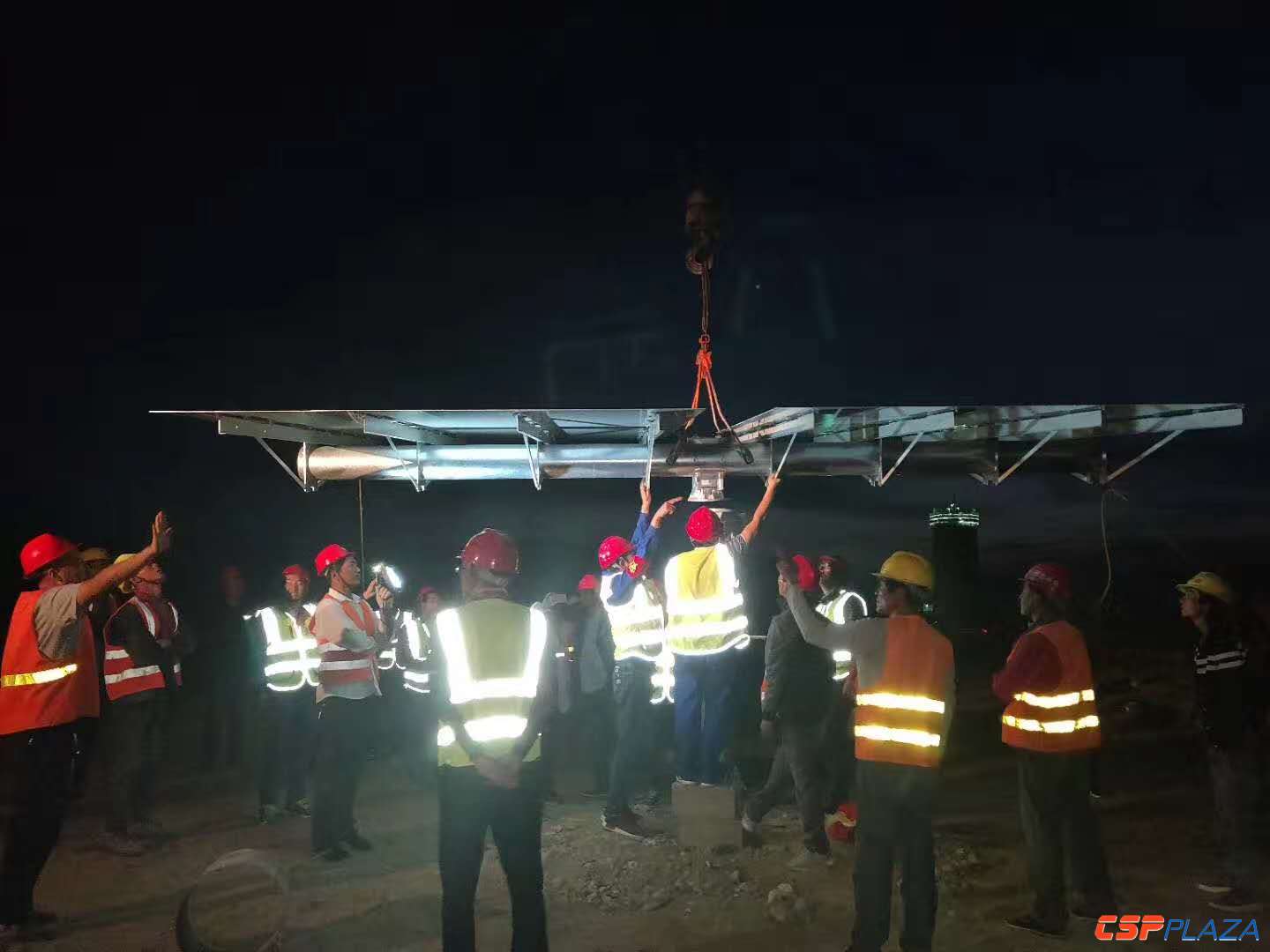 CSPPLAZA光熱發電網訊:6月28日,中電建青海共和50MW塔式光熱發電示范項目第一套定日鏡下線并完成安裝。