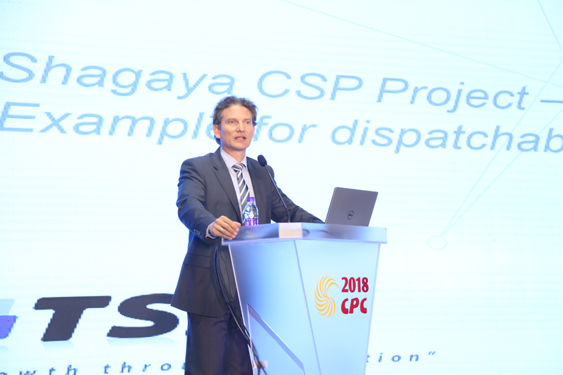 2018年6月20~22日,在北京召開的第五屆中國國際光熱電站大會暨CSPPLAZA年會2018(CPC2018)上,TSK Flagsol Engineering公司總經理Oliver Baudson出席大會并分享了科威特Shagaya光熱發電項目的最新進展及建設經驗。