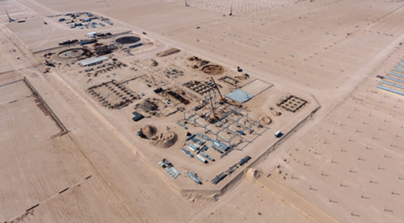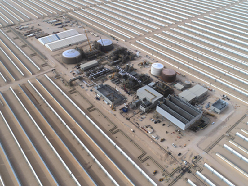 該項目占地面積約為247公頃,區域地面平整,約有100萬方的場平工作,采用SKAL-ET槽,集熱面積達673,620平方米,總計206個回路,安裝275000面反射鏡,10000支集熱管,20000噸金屬結構、3000噸導熱油、33000噸熔鹽。