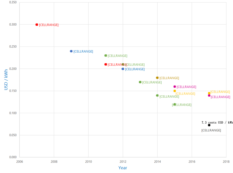圖(tu):全球范圍內(nei)光熱發電LCOE演變(bian)進程