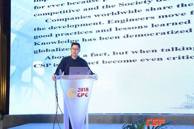 鉅光太陽能科技(北京)股份有限公司技術總監郎宇帆出席了于2018年6月20~22日,在北京召開的第五屆中國國際光熱電站大會暨CSPPLAZA年會2018(CPC2018),在就光熱電站的調試和運維發表主題演講時如是表示。