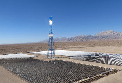 陳武忠介紹說,項目的核心技術是“追日”,用關鍵技術控制安裝在地面的上萬塊玻璃鏡子像向日葵一樣追著太陽光將其反射到吸熱塔上的吸熱器中,將吸熱器內的水轉化成高溫蒸汽,再通過管道傳輸推動汽輪發電機發電。