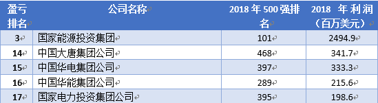 表:2018《財富》世界500強五大發電集團盈虧排行榜