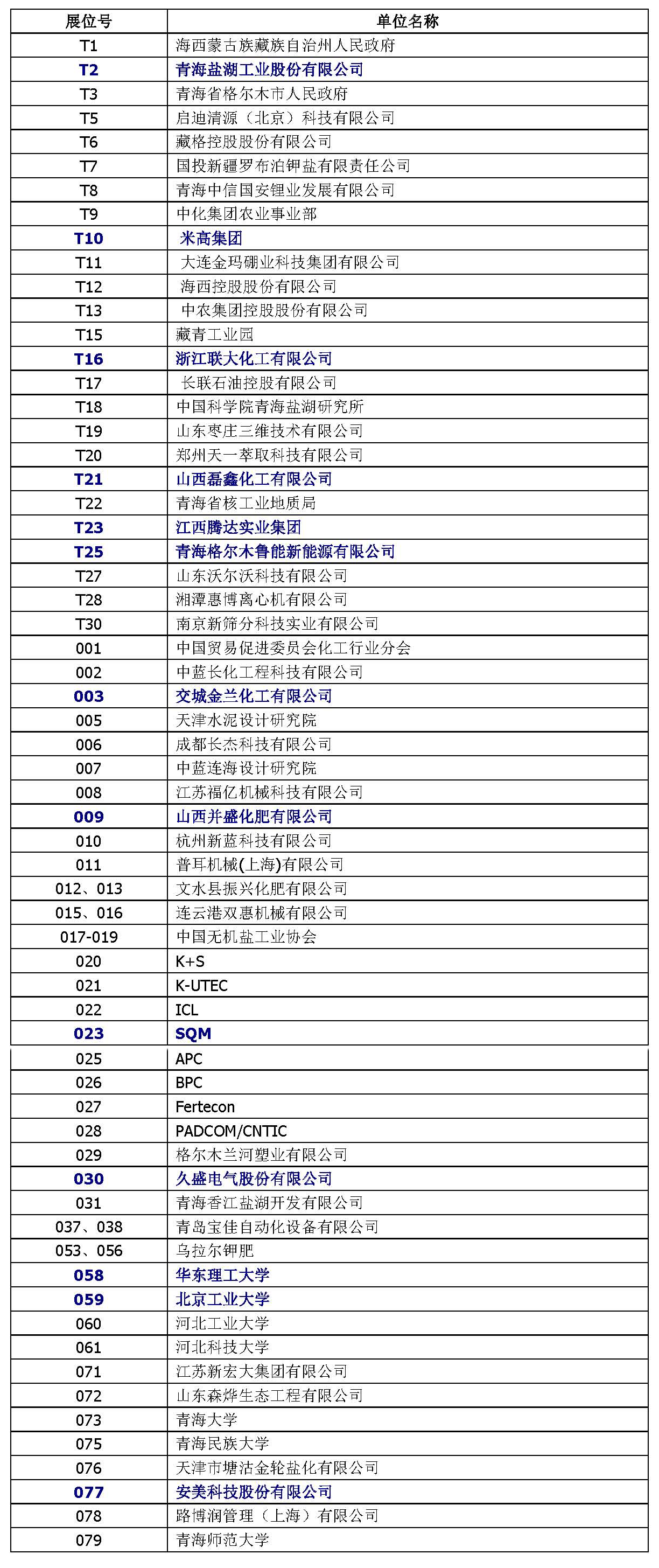 附:展商名錄(注:公司名稱按展位號順序排列)