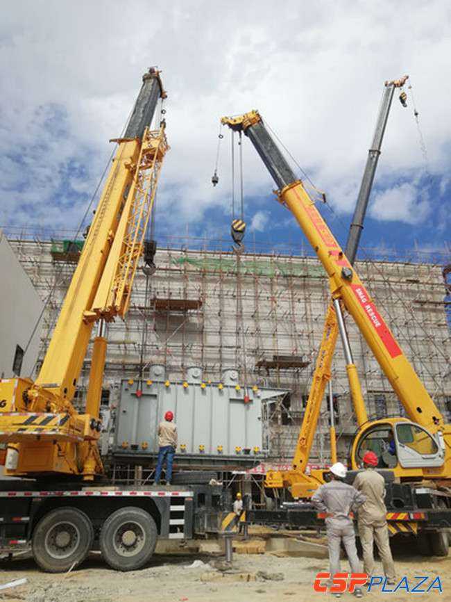 CSPPLAZA光熱發電網訊:據中國能源建設集團江蘇省電力建設第三工程有限公司(簡稱“江蘇電建三公司”)方面消息,8月5日上午10時26分,玉門鑫能50MW塔式光熱發電示范項目主變壓器安全順利吊裝就位。
