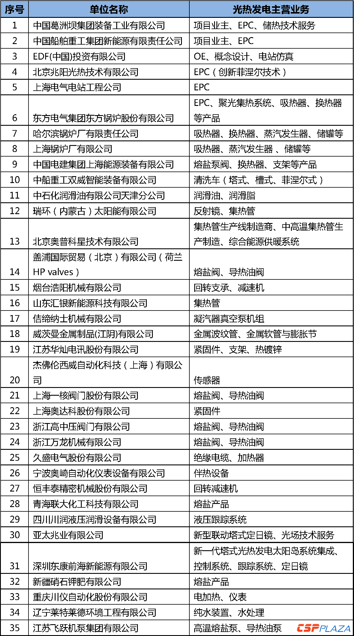 附當前已確定的35家調研會員單位及光熱主營業務簡介:
