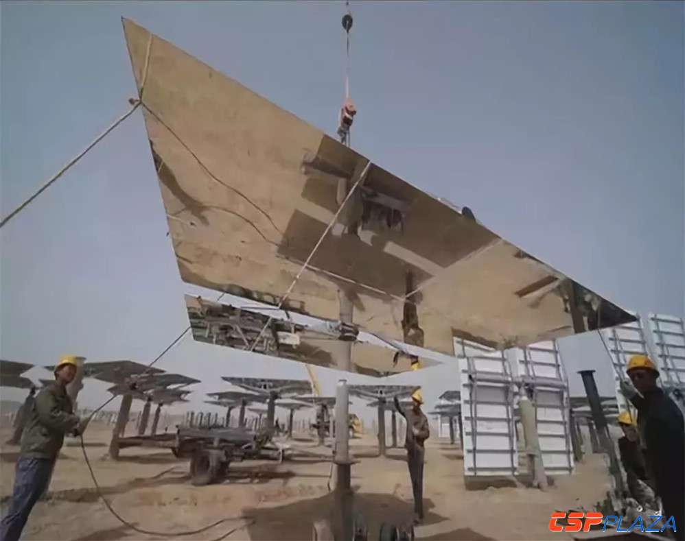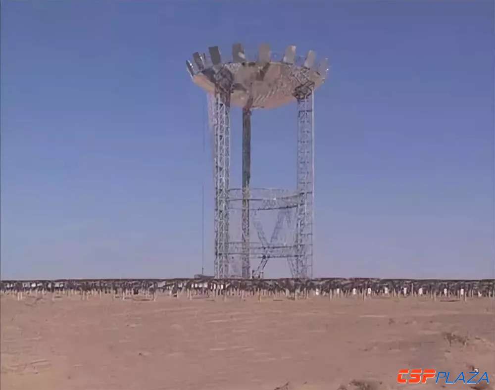 目前,項目1號模塊已建成,2號模塊二次塔拼裝完成,球形網架提升14.5m,定日鏡安裝完成357套;3號模塊二次塔拼裝30%,定日鏡基礎澆筑全部完成,開始安裝;4-10號模塊基礎土建和塔架焊接工程正在進行;已完成主廠房框架、中央冷、熱熔鹽罐安裝、110kv和35kv配電室及35kV架線,其他附屬建筑正在有序施工,計劃2018年底1-5號模塊建成并網。