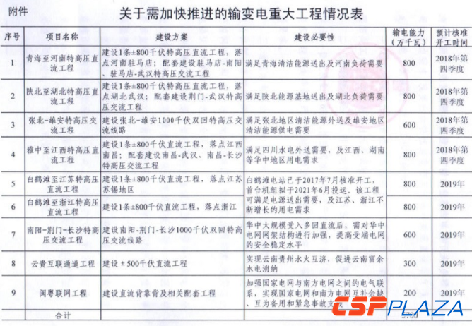 9月7日獲悉,國(guo)家能源局印(yin)發(fa)《關于(yu)加快(kuai)推(tui)進一批輸(shu)變(bian)電重(zhong)點工(gong)程(cheng)規劃建設工(gong)作的(de)(de)通知(zhi)》(國(guo)能發(fa)電力〔2018〕70號)指出,為加大基礎設施領域補短板力度,發(fa)揮(hui)重(zhong)點電網(wang)工(gong)程(cheng)在(zai)優化投資結構、 清(qing)潔能源消納、電力精(jing)準(zhun)扶貧等方面(mian)的(de)(de)重(zhong)要作用,加快(kuai)推(tui)進青海至(zhi)河(he)南(nan)特(te)高壓(ya)(ya)直(zhi)流、白鶴灘至(zhi)江(jiang)蘇、白鶴灘至(zhi)浙江(jiang)特(te)高壓(ya)(ya)直(zhi)流等9項重(zhong)點輸(shu)變(bian)電工(gong)程(cheng)建設,合計輸(shu)電能力5700萬千瓦(具體工(gong)程(cheng)見附(fu)件(jian)),包括了12條特(te)高壓(ya)(ya)工(gong)程(cheng)將于(yu)今明(ming)兩(liang)年給予審核(he)。