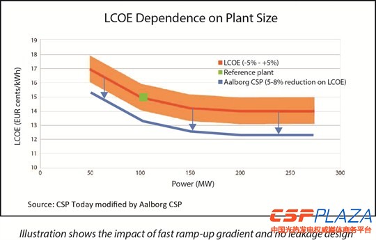 圖:采用Aalborg CSP蒸(zheng)汽發(fa)生器對光熱發(fa)電LCOE的影響