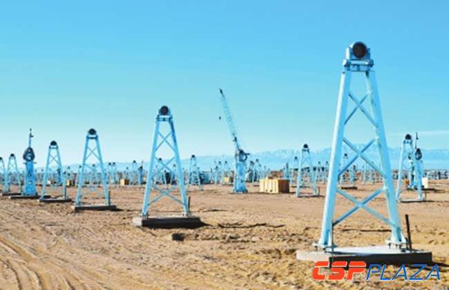 深圳金釩能源50MW高溫槽式(shi)熔鹽光熱發(fa)電(dian)項目(mu)位于甘(gan)肅省阿克塞縣四十里戈壁光熱發(fa)電(dian)基地,設計(ji)年發(fa)電(dian)量2.56億度,總投(tou)資20億元(yuan),由甘(gan)肅光熱發(fa)電(dian)有限公司作為(wei)(wei)項目(mu)業主負(fu)責具體實施(shi)。電(dian)站配置15小(xiao)時儲(chu)熱系(xi)統,設計(ji)建設152個回路(lu),建成后(hou)將(jiang)成為(wei)(wei)全球第一(yi)個可24小(xiao)時持續(xu)發(fa)電(dian)的熔鹽槽式(shi)電(dian)站。