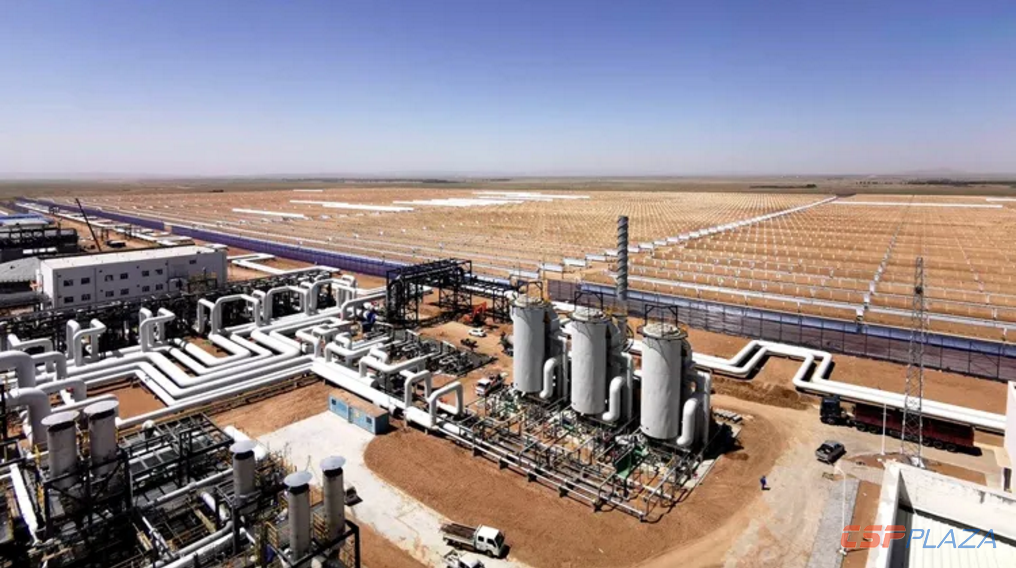 內蒙古中核龍騰烏拉特中旗100MWp光熱發電示范項目是自治區級重點建設項目,是我國規模最大的槽式光伏發電項目。項目2016年9月入選國家第一批光熱示范項目,同年取得備案批復。項目位于內蒙古巴彥淖爾市烏拉特中旗新忽熱蘇木希熱嘎查境內,總占地面積約7300畝,總裝機容量100MW,總投資約34億元。項目采用導熱油槽式聚光集熱+10小時熔鹽儲熱的設計方案,配套建設相關基礎設施、輸電工程,電站設計光電轉化效率約達26.76%。電站由集熱場(太陽島)、儲熱島(換熱)、常規島等三部分組成。