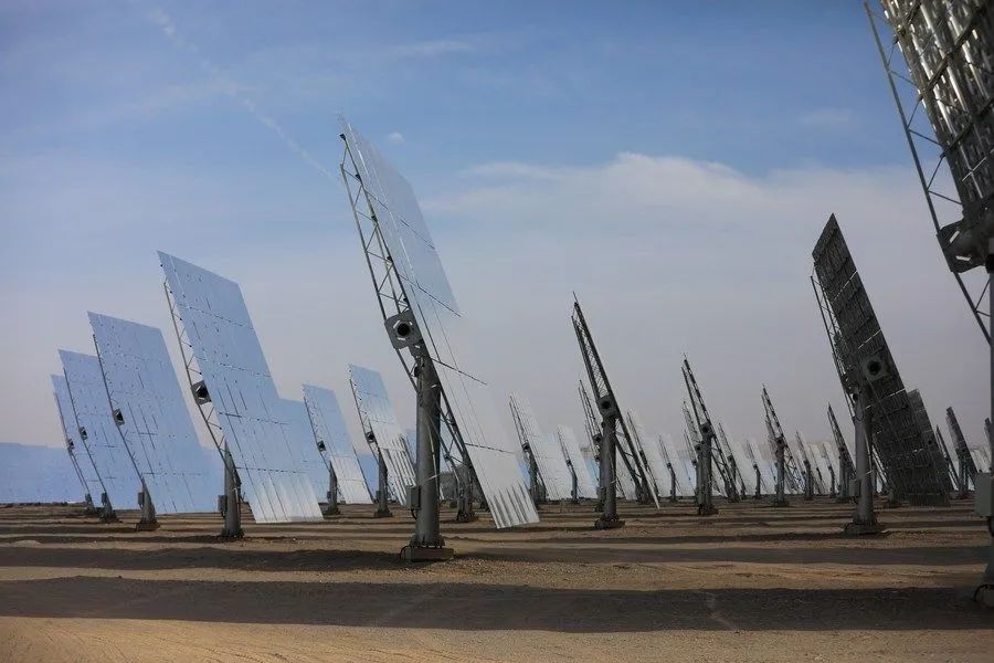 “超級(ji)鏡(jing)(jing)子”們組成(cheng)的鏡(jing)(jing)場是太陽能采集(ji)器。新(xin)華社記者馬希平攝