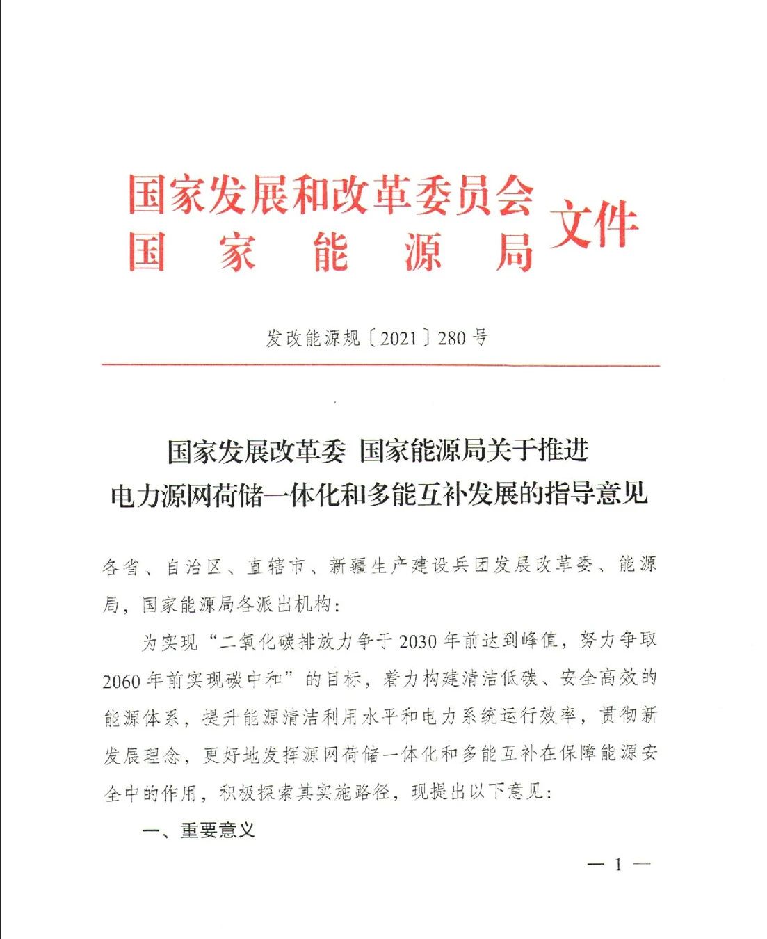 近日,國家發展改革委、國家能源局發布《關于推進電力源網荷儲一體化和多能互補發展的指導意見》(文件附于正文后),有效期5年。